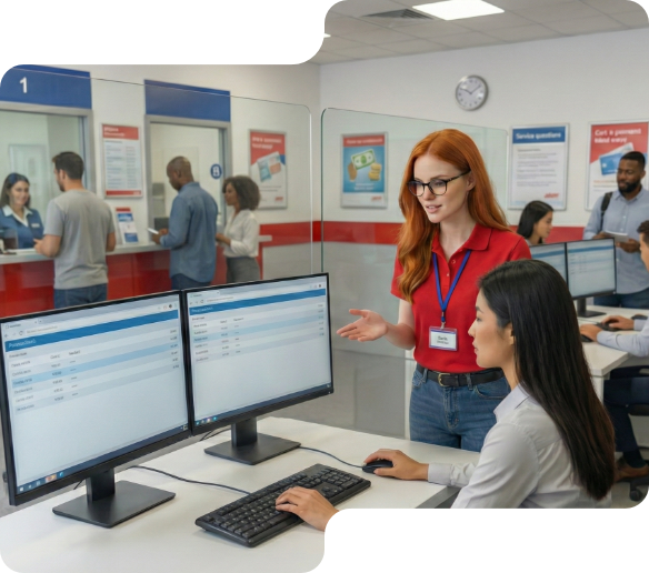 Gerentes e atendentes com procedimentos atualizados de produtos, compliance de abertura de conta, regras de crédito. Mesmo padrão em centenas de agências.